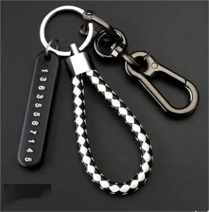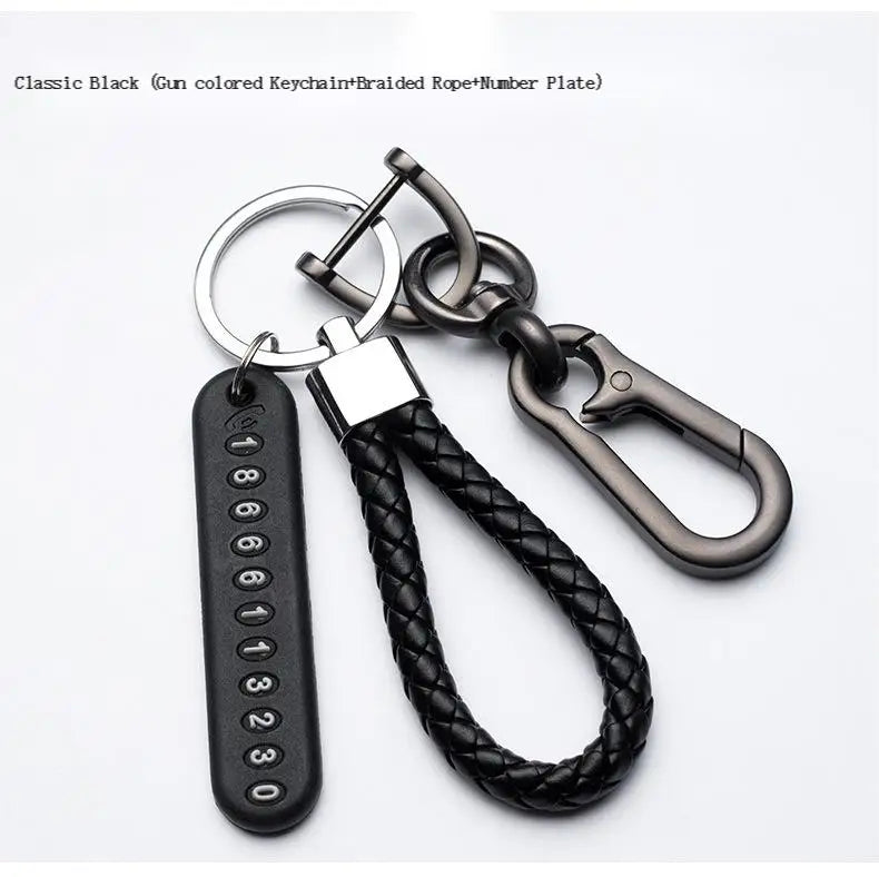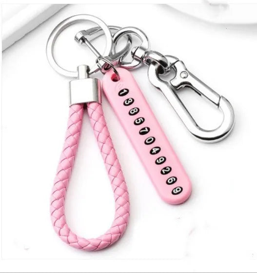 Anti-Loss Car Keychain with Phone Number Plate & Braided Rope