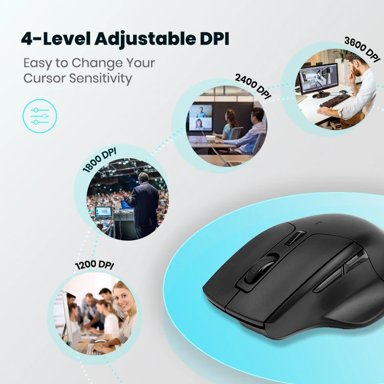 The mouse offers a versatile DPI range of 1200, 1600, 2400, and 3600, allowing you to customize sensitivity to your liking.