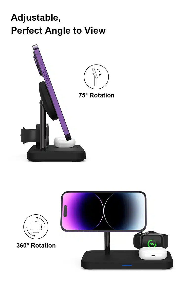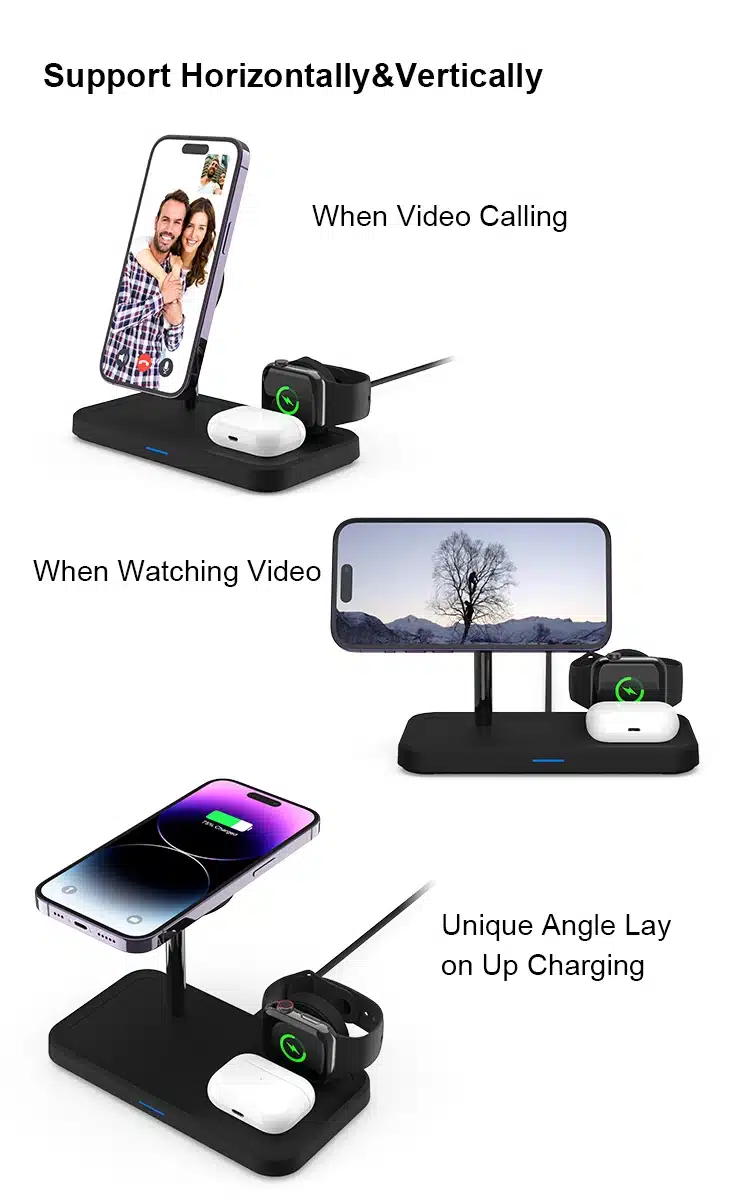 Experience the convenience of charging your phone, smartwatch, and earbuds simultaneously with this sleek and efficient charging station. Designed with cutting-edge technology, it ensures fast and safe charging for all your devices.