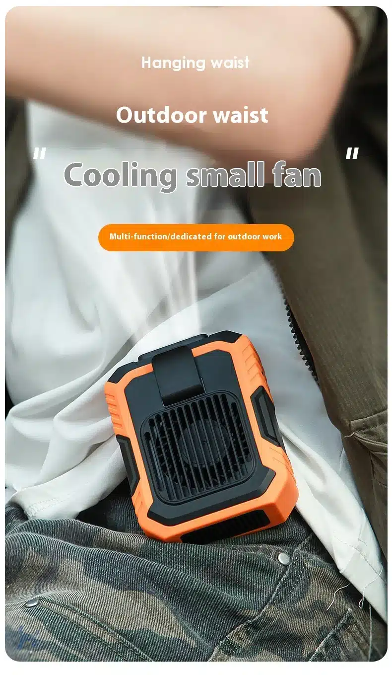This fan is powered by a battery, ensuring convenient and portable use for outdoor activities.