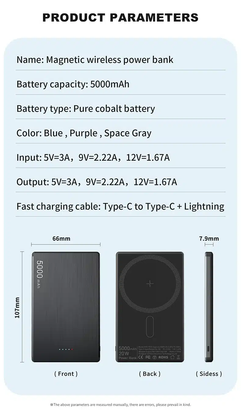 Compact and Lightweight: Weighing just 150g and measuring 107*66*7.9mm, it’s perfect for on-the-go charging without the bulk.