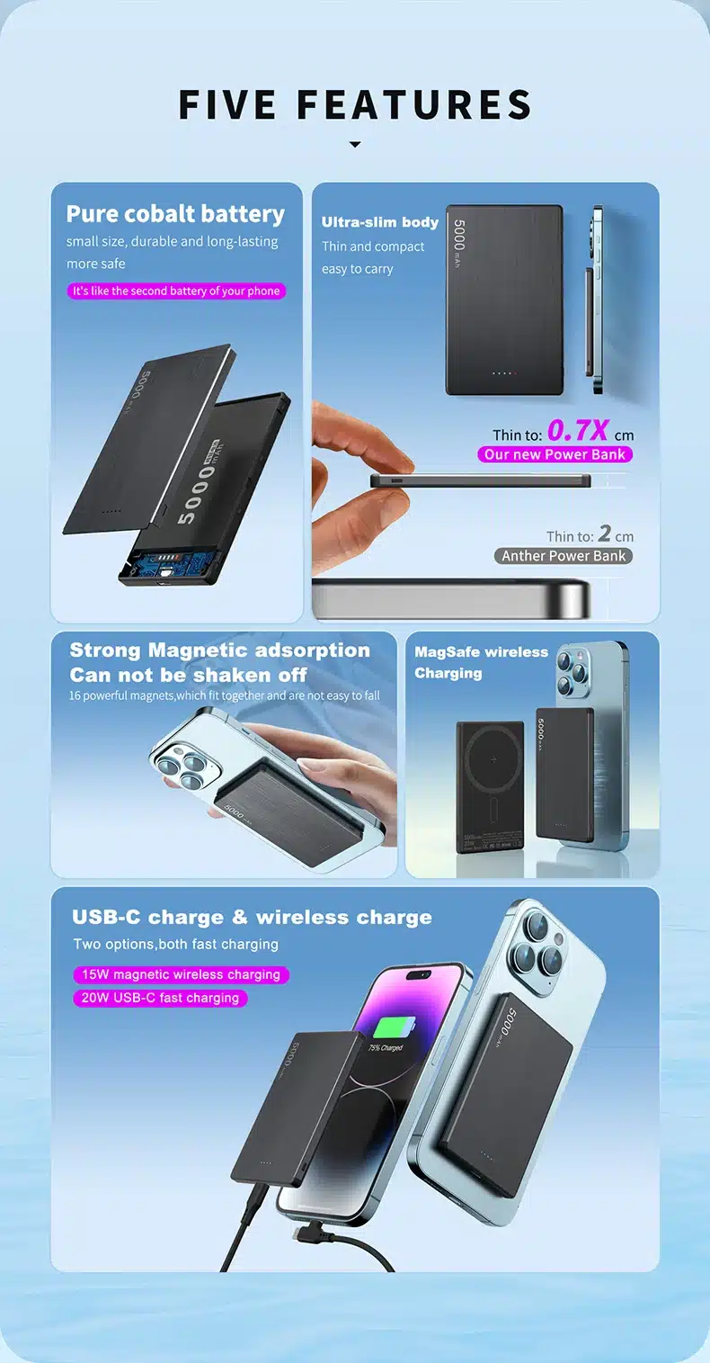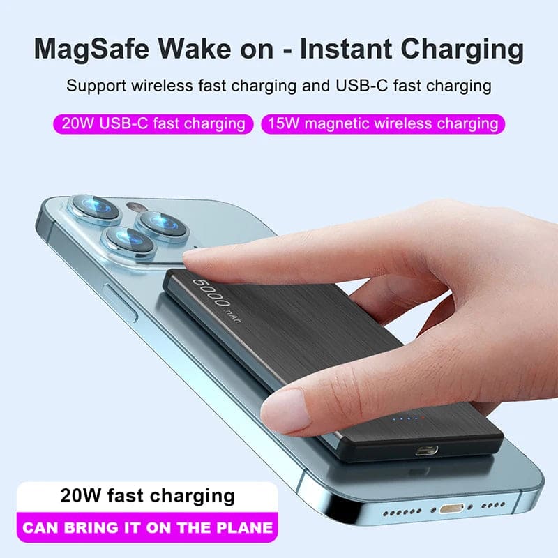 Experience the future of charging with magnetic wireless capabilities, offering a hassle-free power boost for both iOS and Android devices.