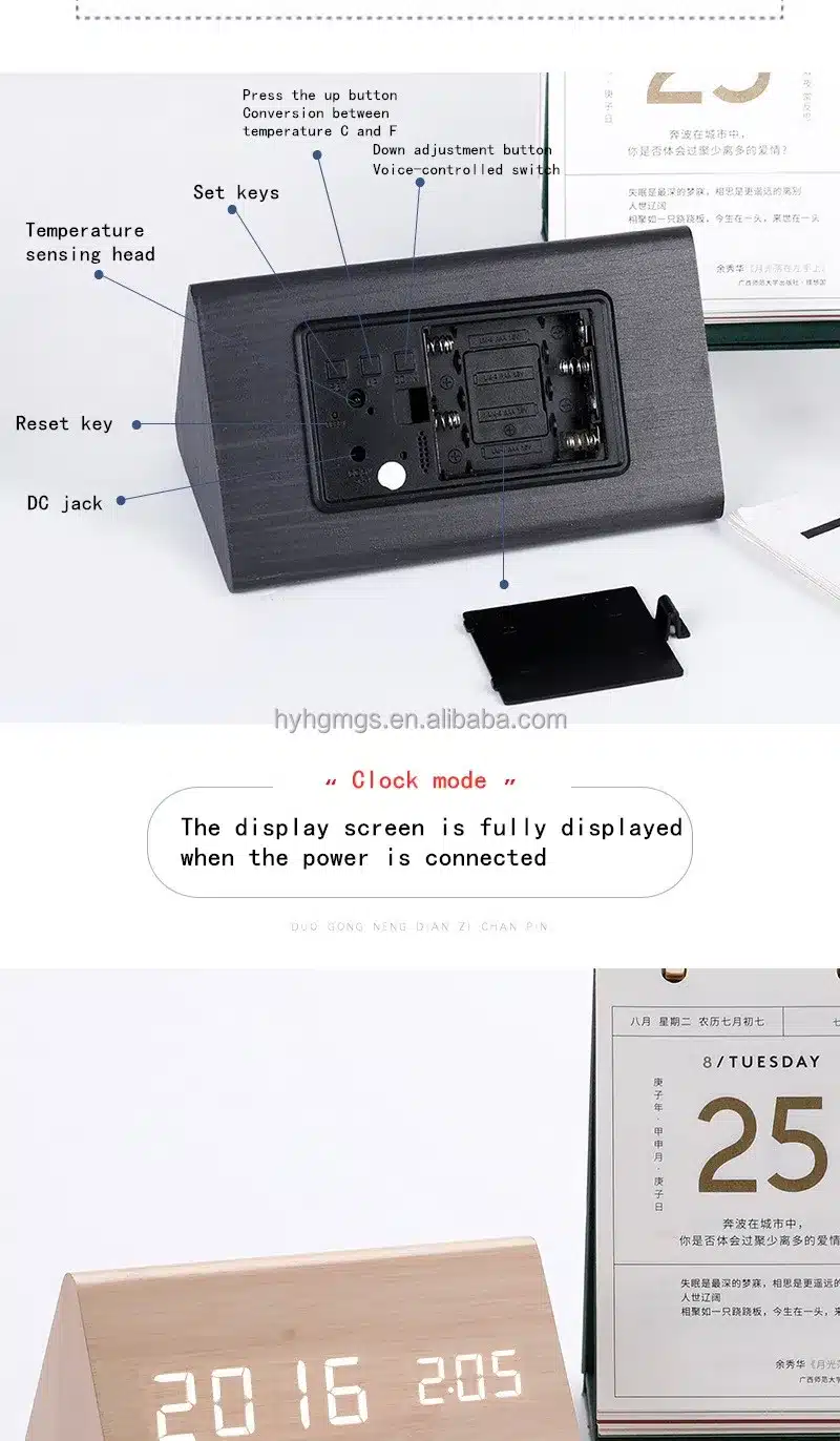 • Sound Control: Activate the clock with sound to save energy when not in use.