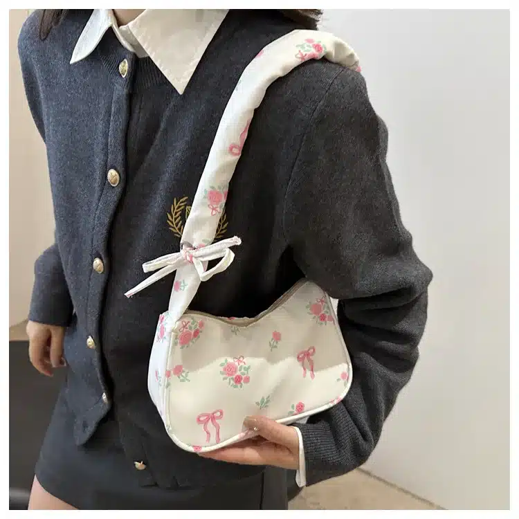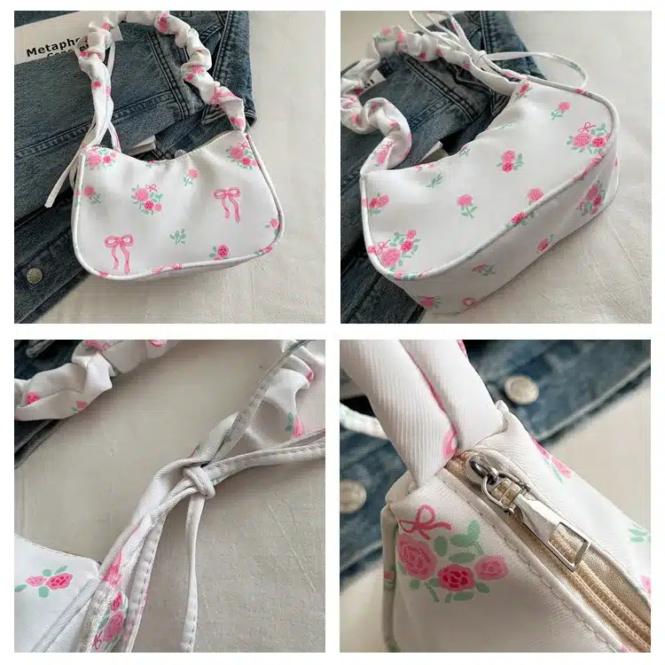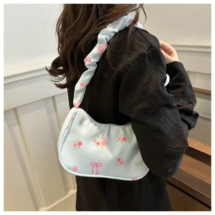 What material is the Women’s Floral Bow Pleated Shoulder Bag made from?