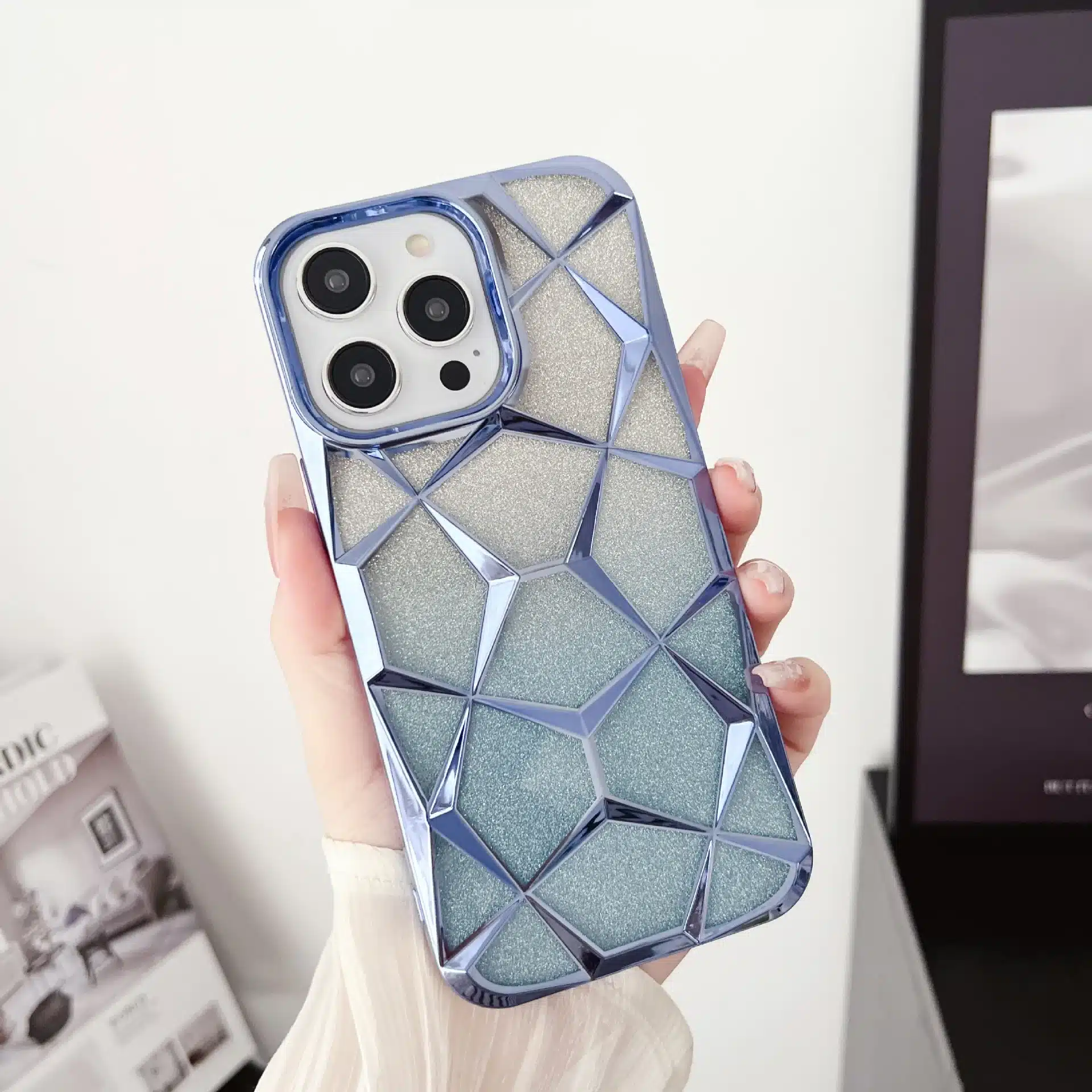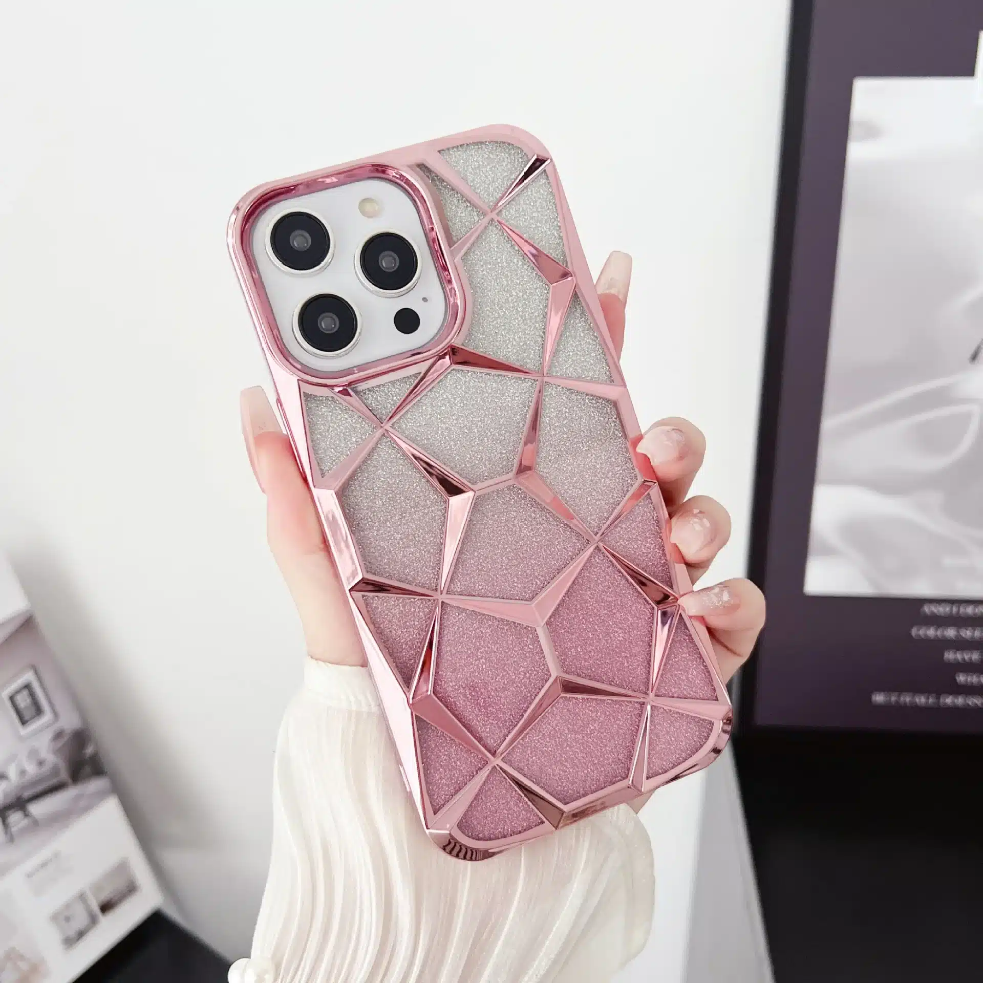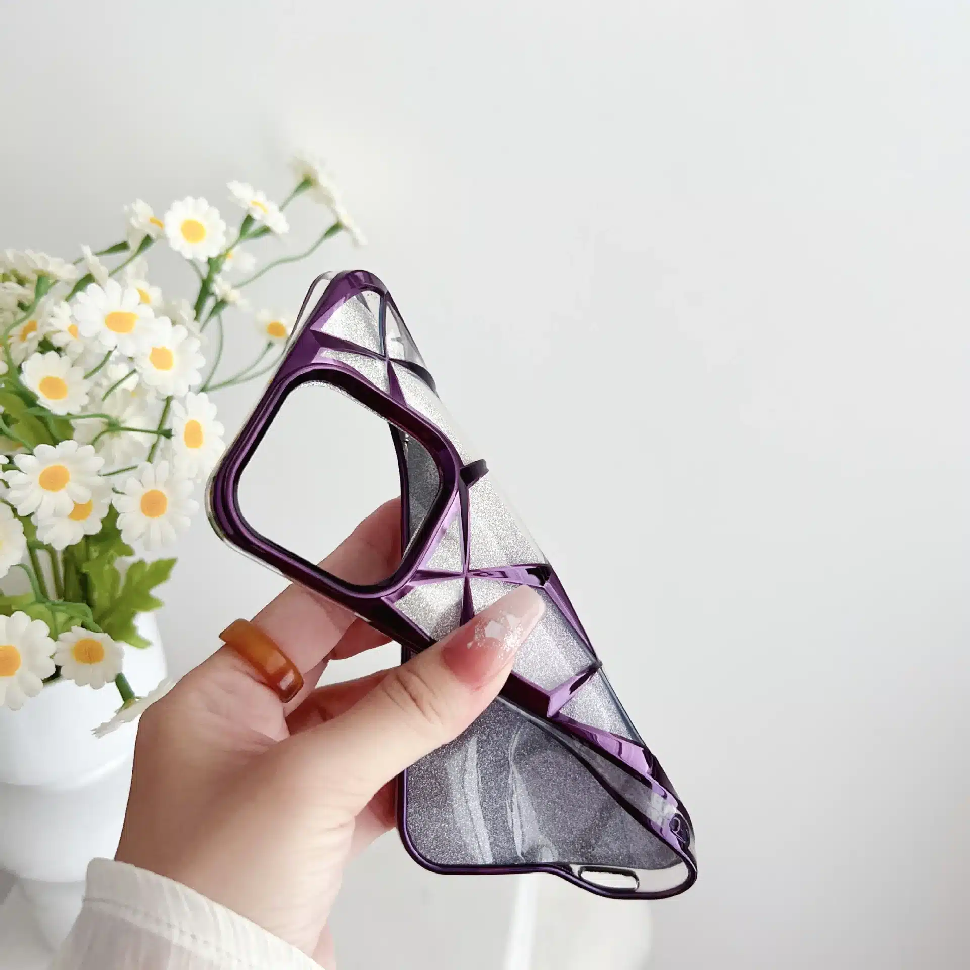 Soft Clear Lattice Case For iPhone 15 Pro Max 11 12 13 14 Pro Max Gradient Glitter Geometric Pattern Phone Case