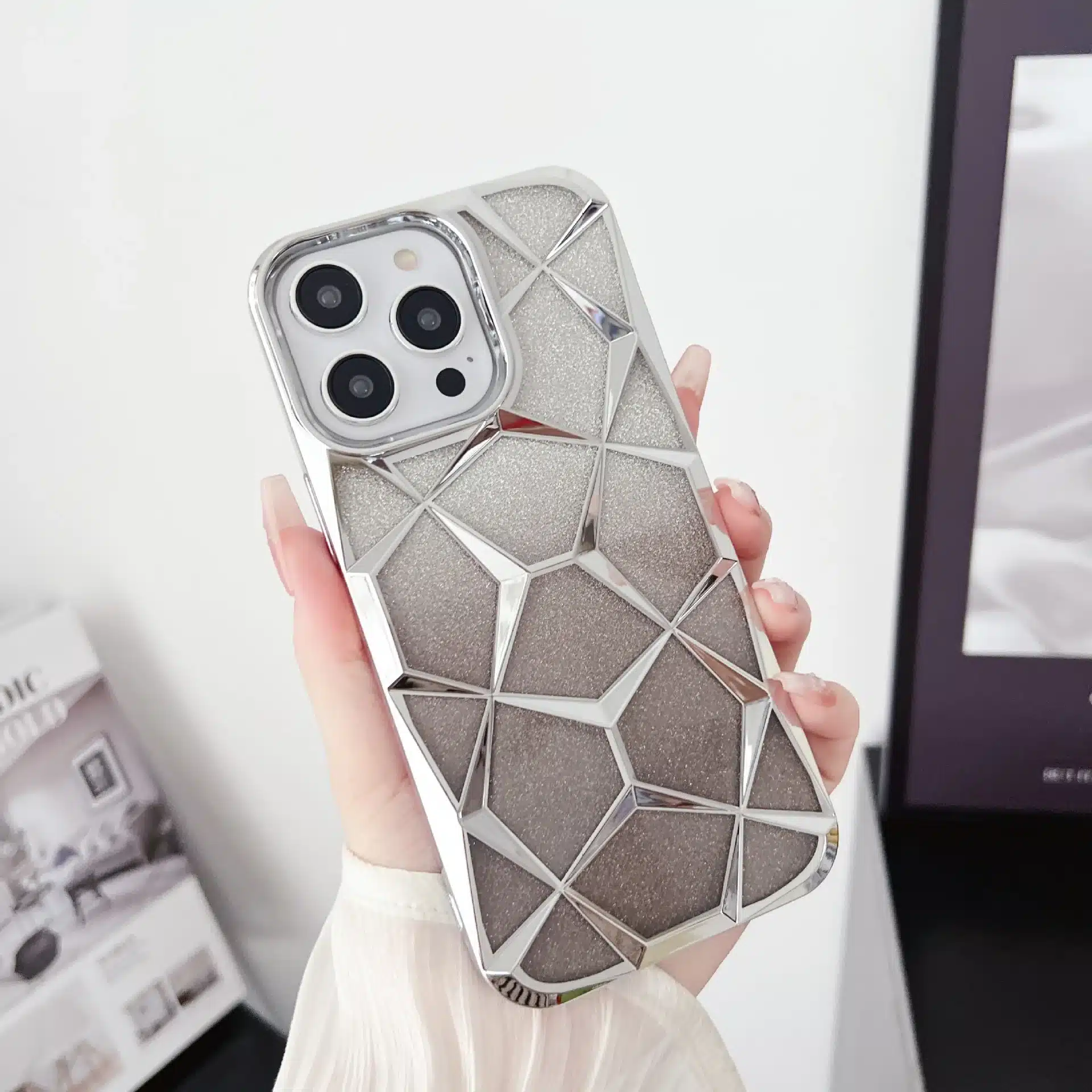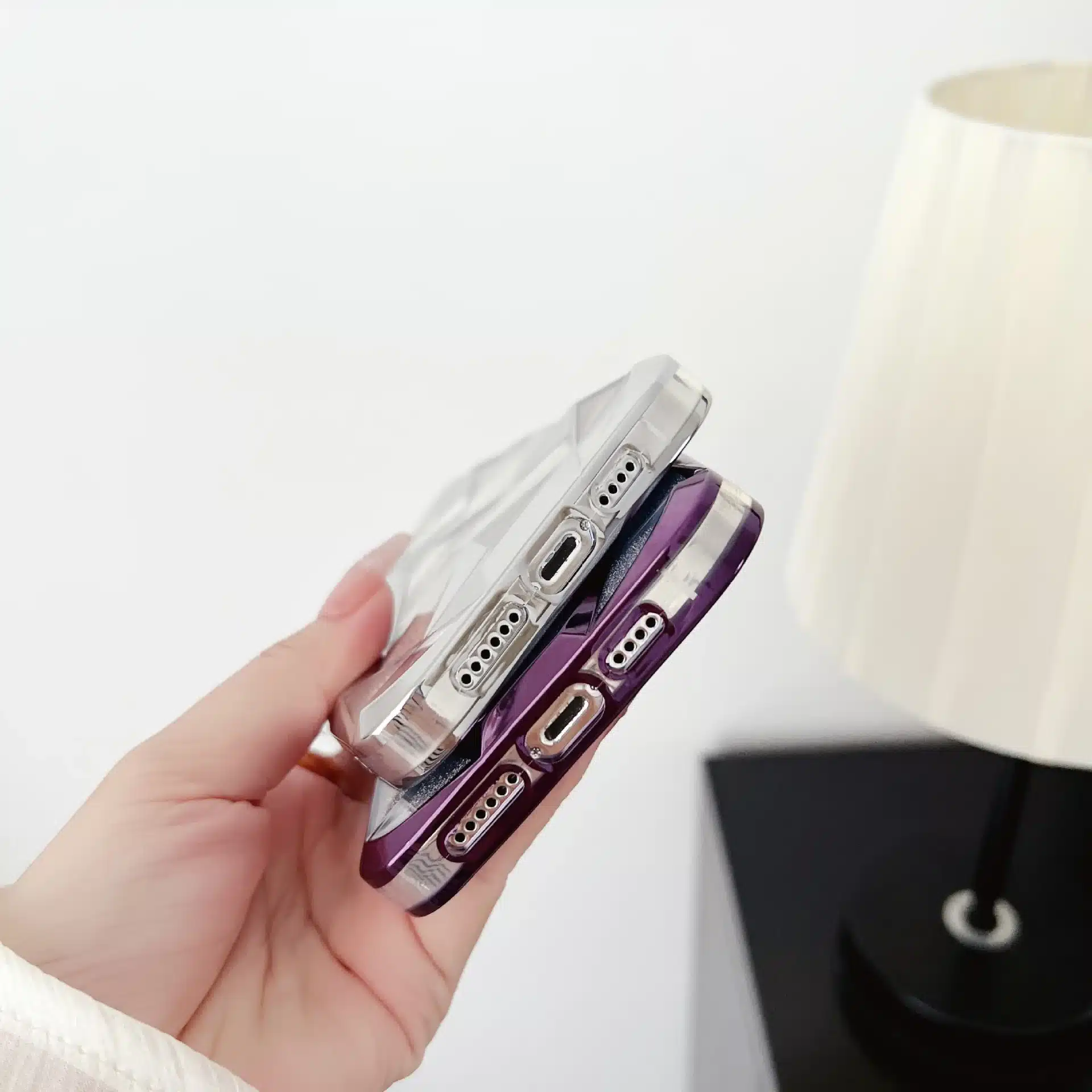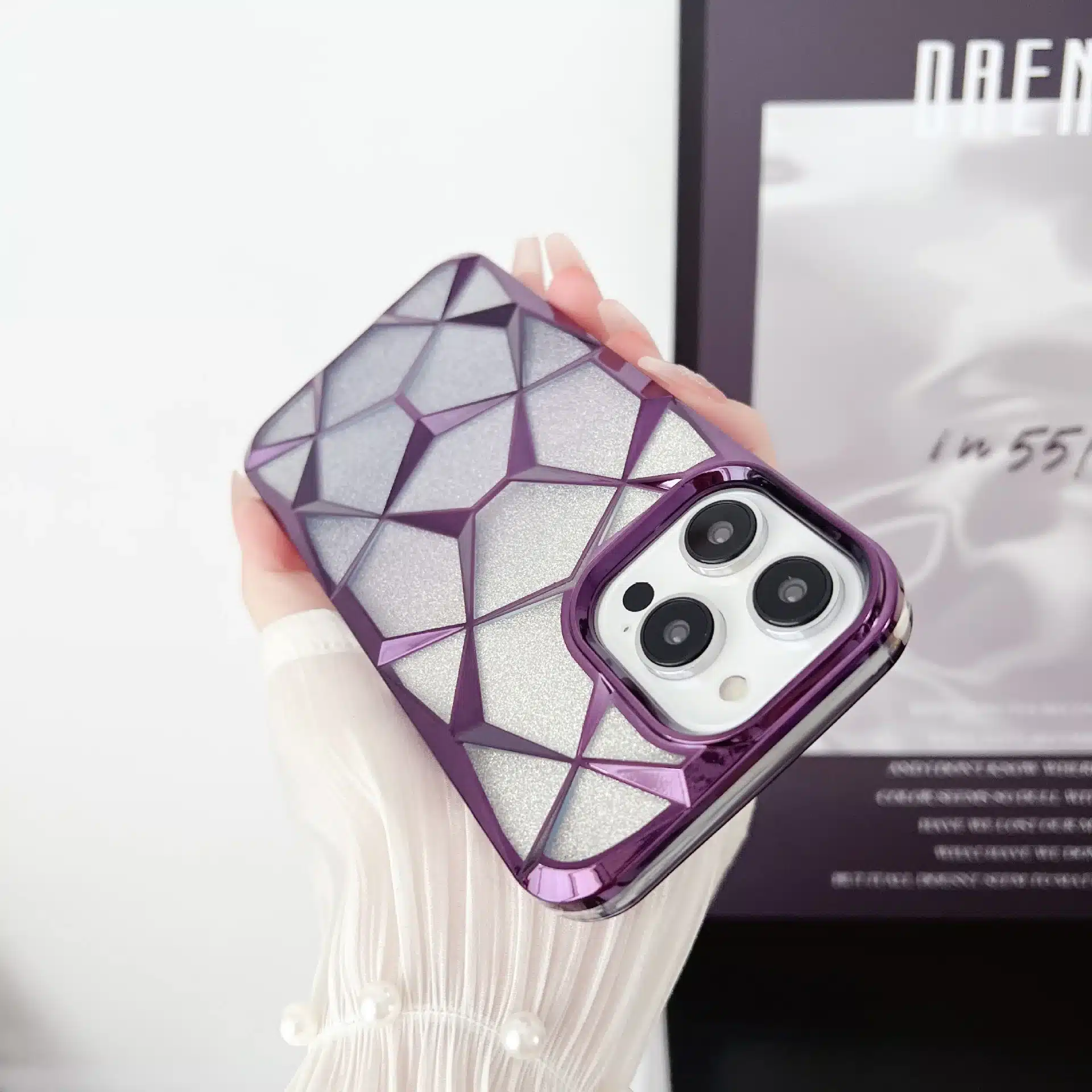 Soft Clear Lattice Case For iPhone 15 Pro Max 11 12 13 14 Pro Max Gradient Glitter Geometric Pattern Phone Case