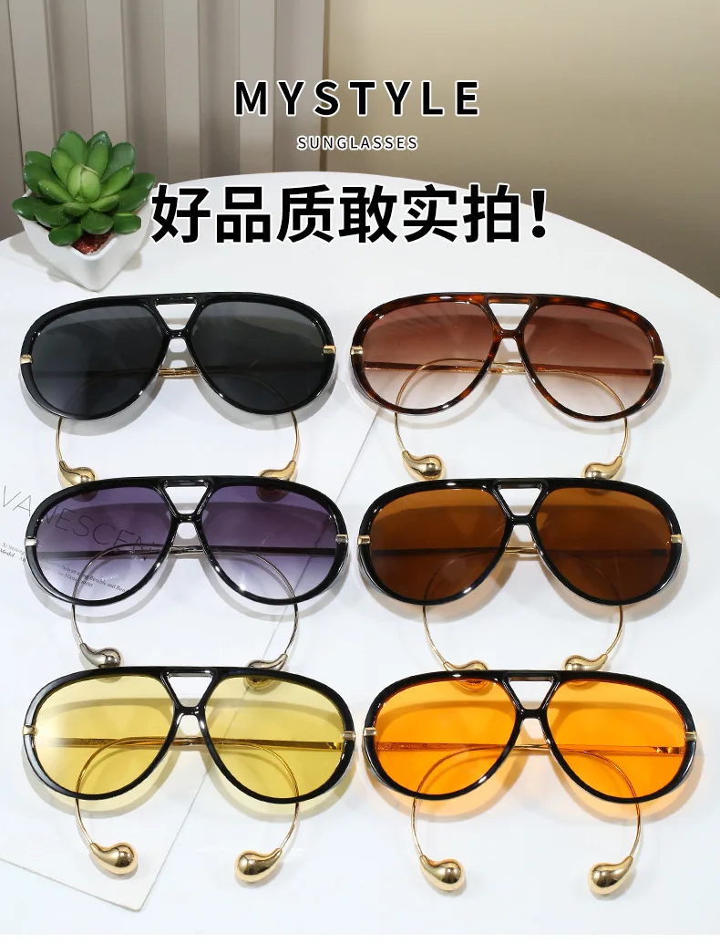 Luxury Brand Pilot Oval Sunglasses Women for Men 2025 New Popular Vintage Bent Leg Design Sun Glasses Punk Double Bridge Eyewear