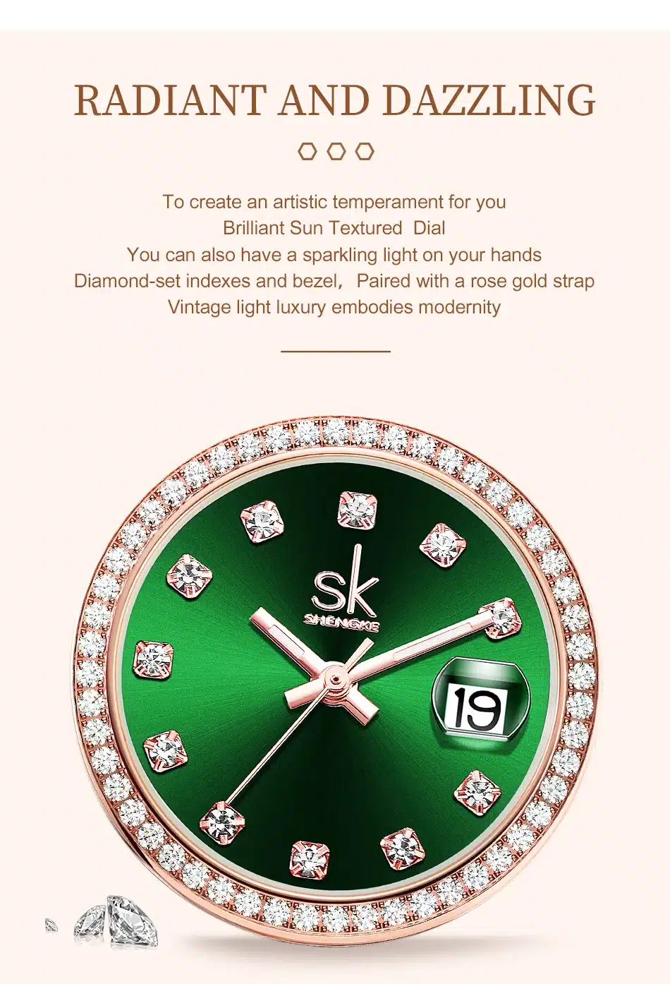 Elevate your style with the Shengke Ladies Quartz Watch, where elegance meets precision.
